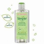 تونر سیمپل مدل Kind To Skin Soothing Facial یک محصول محبوب برای پاکسازی و تنظیم pH پوست است. این تونر حاوی پرو ویتامین B5، بابونه، فندق افسونگر و آلانتوئین است که به تسکین، تغذیه و تقویت پوست کمک میکند.همچنین، فاقد الکل، پارابن، فتالات، عطر و رنگ مصنوعی است، بنابراین برای پوستهای حساس گزینهای عالی محسوب میشود