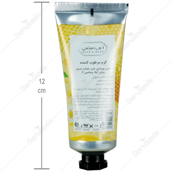 • کرم مرطوب کننده شیر و عسل دیپ سنس تامین کننده و حافظ رطوبت با ماندگاری بالا